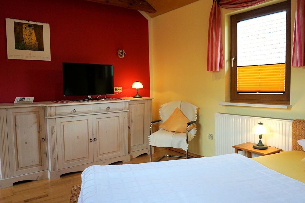 Zur geräumigen Ferienwohnung gehören ein Wohnzimmer, ein Schlafzimmer mit Doppelbett, ein Bad mit Badewanne, Dusche und WC; sowie eine große, komplett ausgestattete Küche.